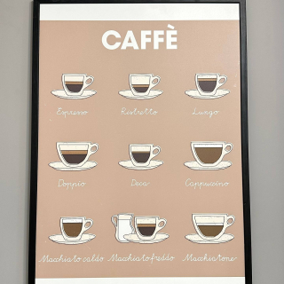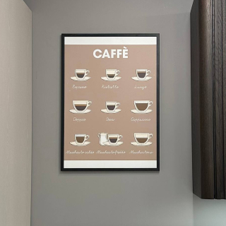 Постер, цвет бежевый, с изображением кофейных напитков.