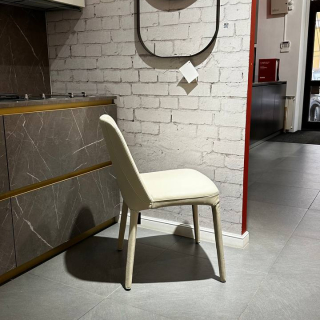 Особенность этого современного стула - изогнутая спинка, которая поддерживает спину мягкой и нежной линией, усиленной элегантной декоративной строчкой.