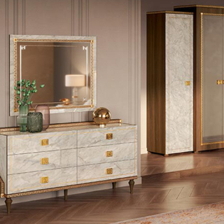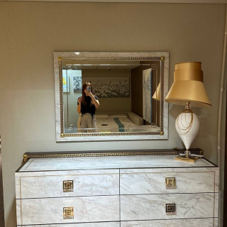 Маленькое зеркало — изысканная деталь, которая добавляет света и визуальной привлекательности. Зеркальная поверхность заключена в две концентрические рамы, которые перекликаются с отделкой всей коллекции Romantica, что делает его изысканным и универсальным аксессуаром, который можно использовать отдельно или в сочетании с двухдверным буфетом и входной консолью.
