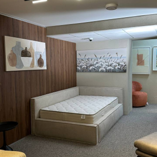 В ассортименте — диваны разных форматов и стилей: 2- и 3-местные, угловые, трансформеры, модели с оттоманкой, а также кресла, банкетки и пуфы.