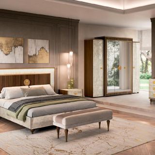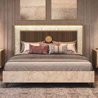 Кровать Romantica главная героиня романтической спальни, отличается строгим и изысканным дизайном. В этой модели от Arredoclassic изголовье из орехового дерева и глянцевого каррарского мрамора демонстрирует неподвластную времени красоту. Каркас кровати, также выполненный из глянцевого каррарского мрамора, придает ей утонченности, а центральный фриз, покрытый 24-каратным золотом, — роскоши.
