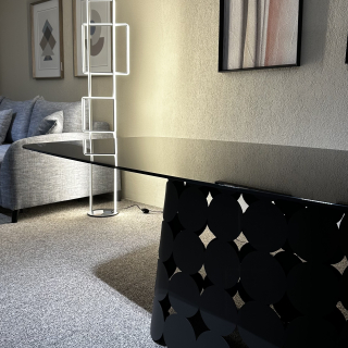 Столешница в черном стекле, со скругленными краями..